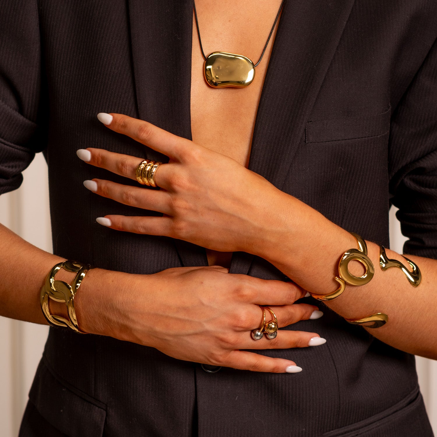 Our collections are designed to reflect different moods and styles, from sculptural silhouettes to soft, luminous finishes. Whether you prefer minimal, statement or mixed-metal layering, our pieces are created to work together seamlessly so styling never feels complicated.